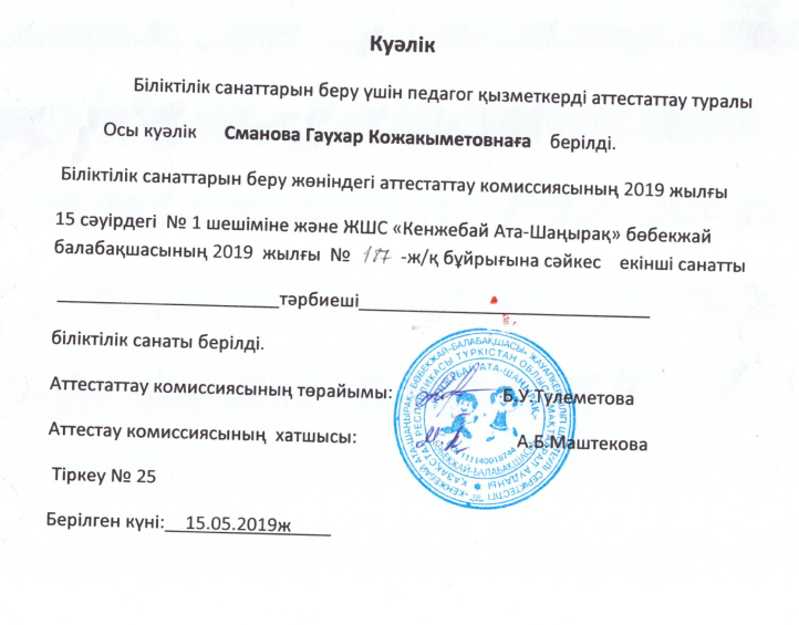 Педагогтардың біліктілік санаты куәліктері