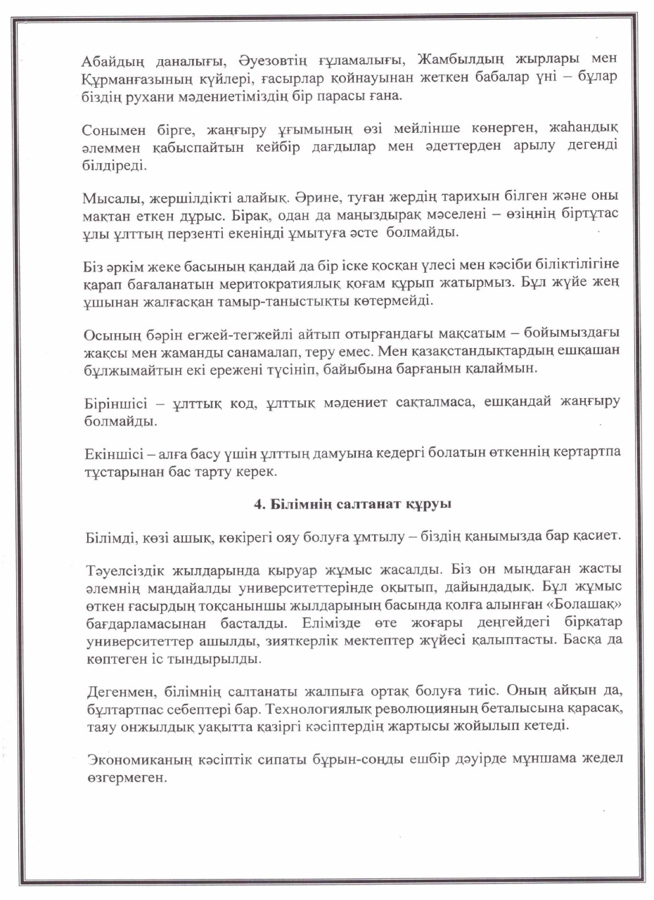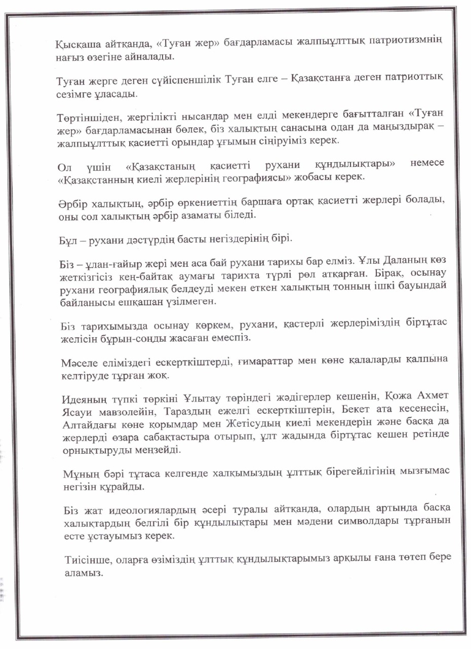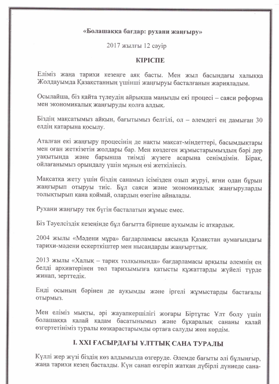 «БОЛАШАҚҚА БАҒДАР: РУХАНИ ЖАҢҒЫРУ» БАҒДАРЛАМАСЫ