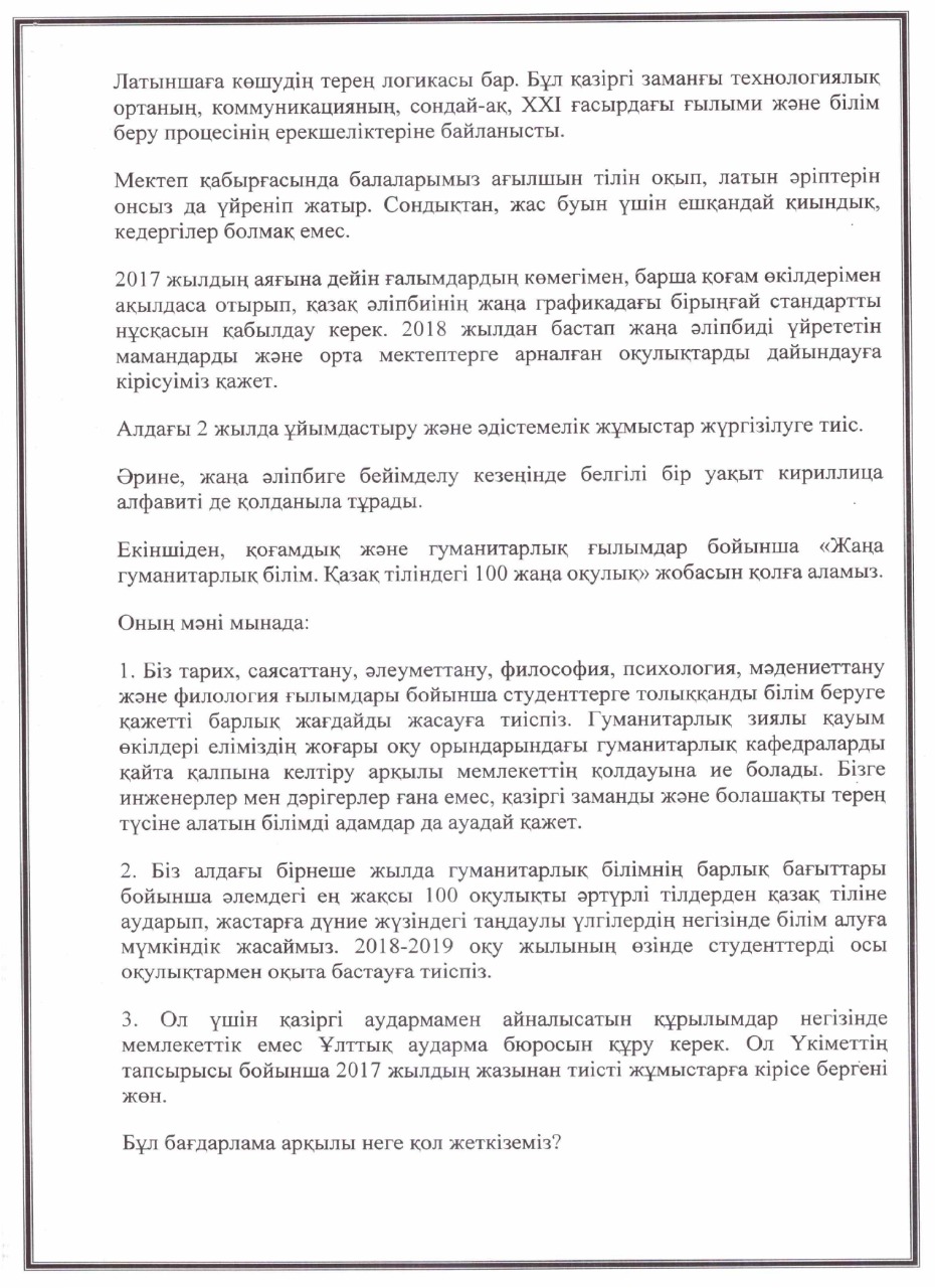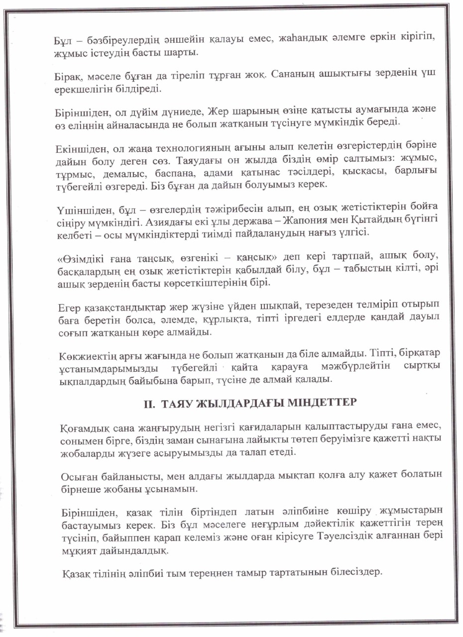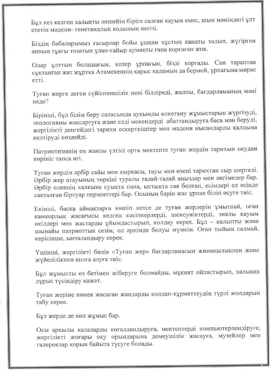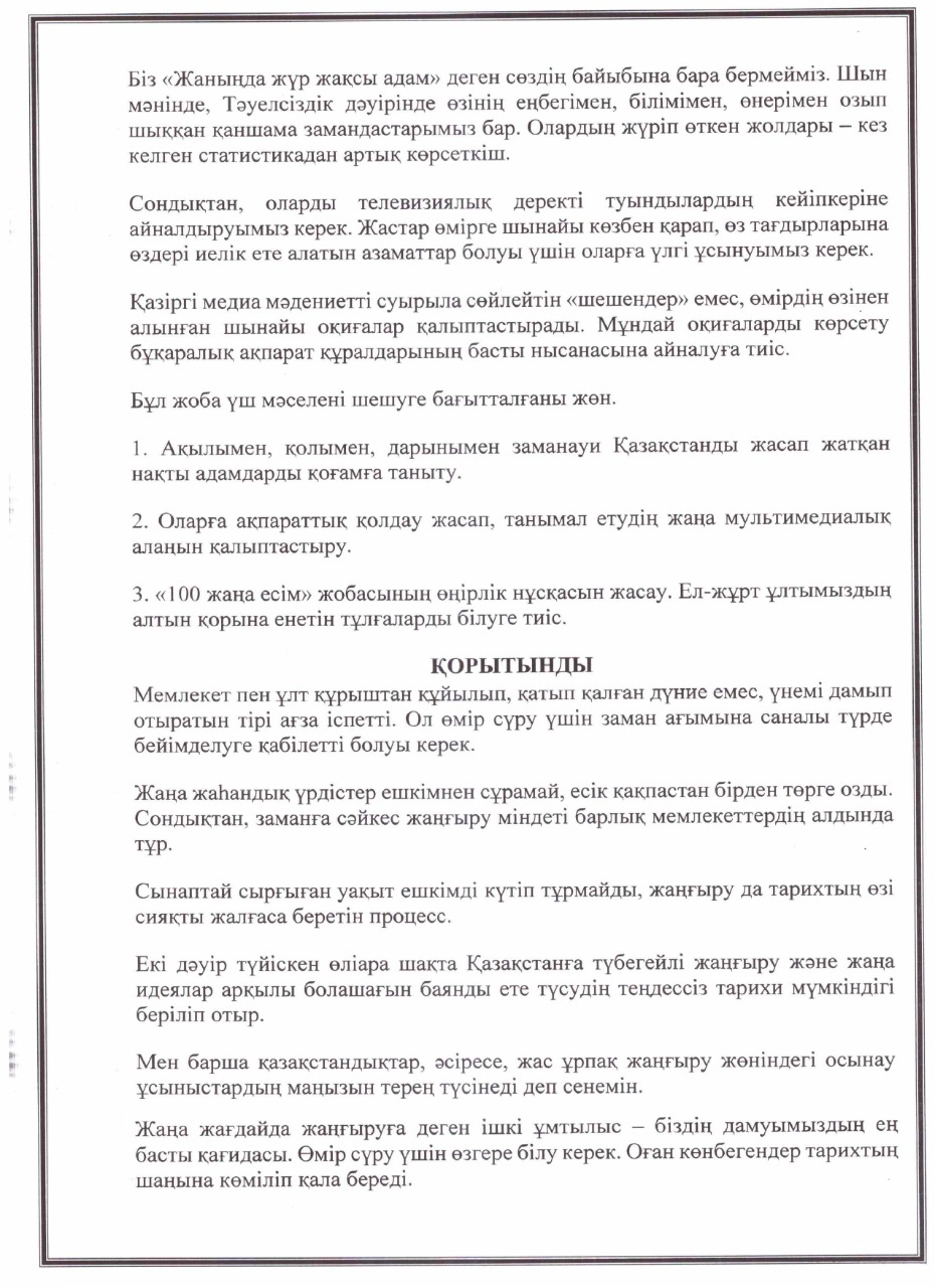 «РУХАНИ ЖАҢҒЫРУ» БАҒДАРЛАМАСЫ ЖҰМЫС ЖОСПАРЫ